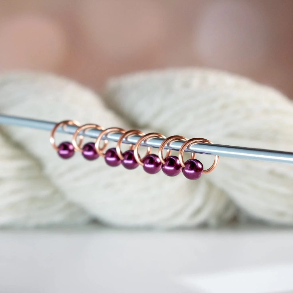 These lovely little copper stitch markers are handmade in the United S by Blue Bird Makery. Each one is individually shaped from smooth copper wire, so they’re completely snag-free and won’t catch on your yarn.