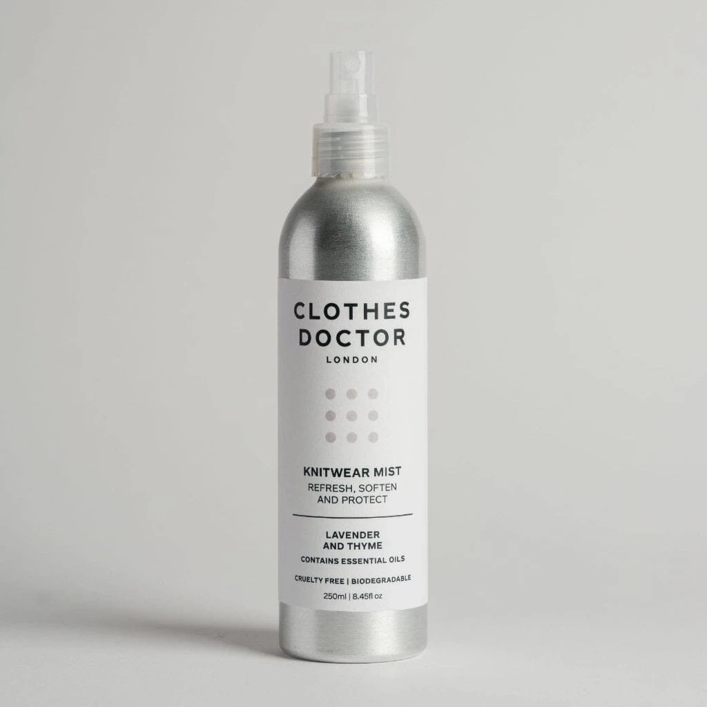 Clothes Doctor’s unique Knitwear Mist comes in two scents, choose between lavender and thyme or cedarwood and vanilla. They act as a natural moth repellent, extending the life of your precious items. Spray regularly onto your garments for an instant anti-moth impact and clothing refresh.