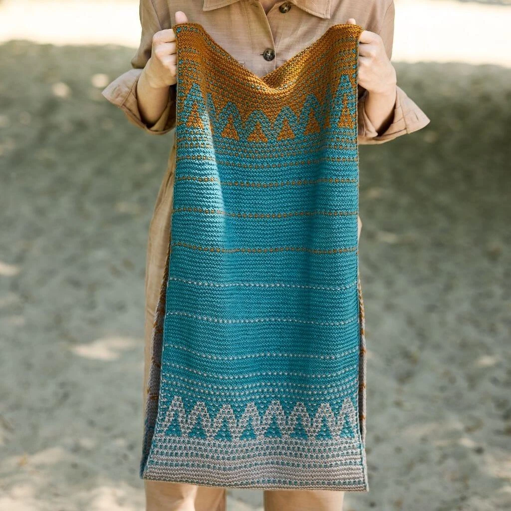 With Composure, you can experience the art and serenity of knitting. This beautiful cowl is knit in three colours of Rosy Green’s Cheeky Merino Joy, creating a beautiful gradient transition. The simple yet elegant mosaic pattern is achieved stitch by stitch, with the sophisticated edges reflecting your dedication to detail. Composure is not just a scarf but a companion for relaxation and self-connection, providing warmth, balance, and a unique artistic style.