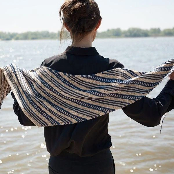 You start knitting Contact at the right corner, shaping it by working increases along the top edge and decreases along the shorter edge. The high-contrast stripes are mellowed by simple textures formed by knit and purl stitches. For the mosaic motif within the stripes, you keep the colour of the previous row by simply slipping stitches. Thus, you work with only one strand of yarn per row and nevertheless achieve an interesting two-coloured effect.