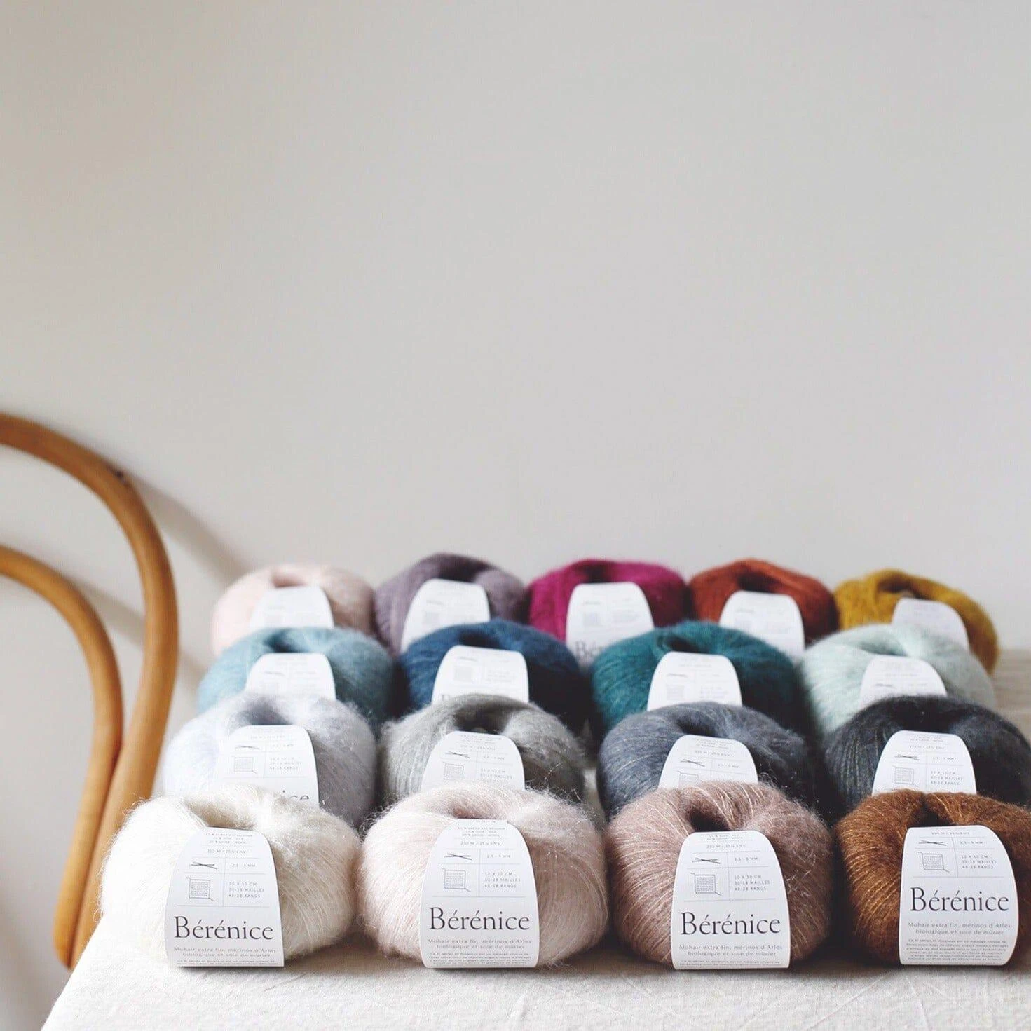 Bérénice is a new yarn from De Rerum Natura. It is made from extra-fine Angora goat fibres and organic Merinos d’Arles wool. The yarn is dyed with ecological dyes and spun near Biella, Italy.