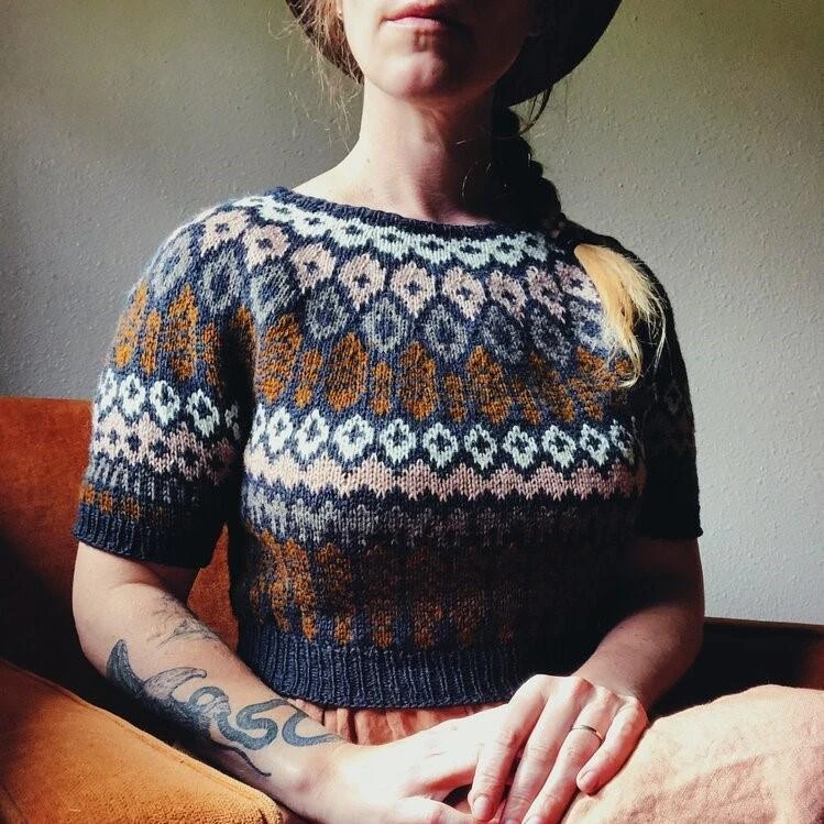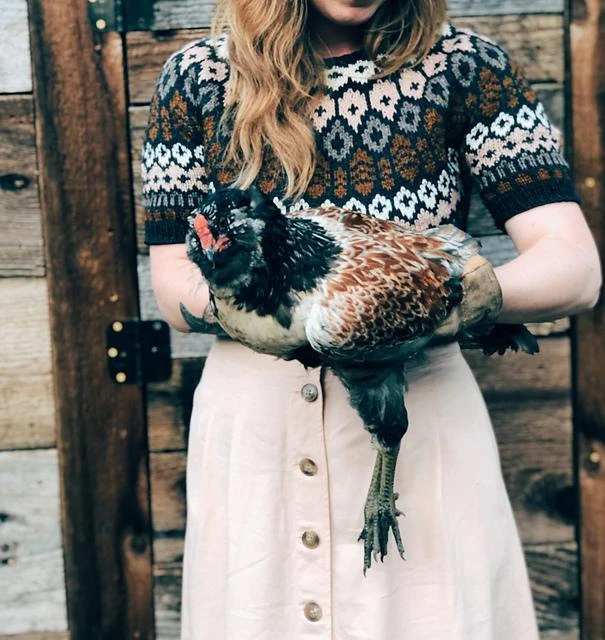 Jupiter Crop is a cute, top-down sweater inspired by Caitlin Hunter’s very own handsome Rooster, Jupiter! Allover colourwork keeps this design fun and flying off your needles! A few rounds with 3 colours to carry, adds a tiny bit of a challenge to keep things interesting. Being a top-down design means you can try on your sweater as you go, so you can alter the length as needed for your perfect fit.
