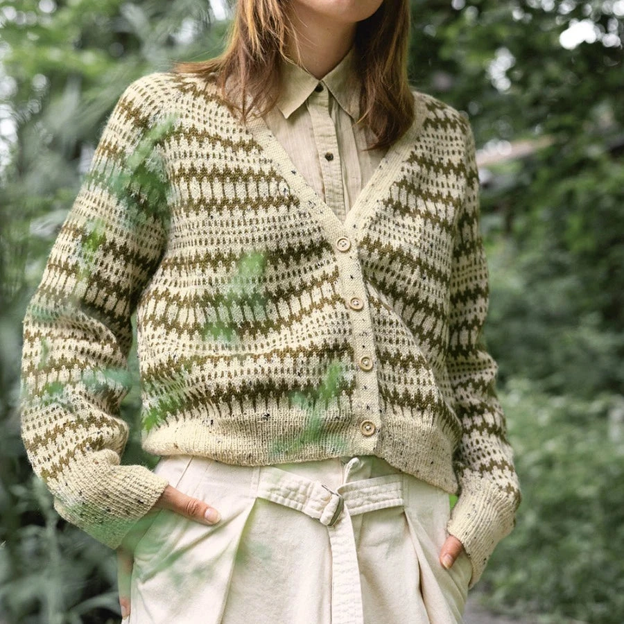 The Kleiva Cardigan is a colourwork cardigan that catches the eye! It is worked in the round and then steeked at the front, reinforcing the steeked edge and finishing it off with a double-knit summary band. All colourwork is charted and worked on both the body and the sleeves.