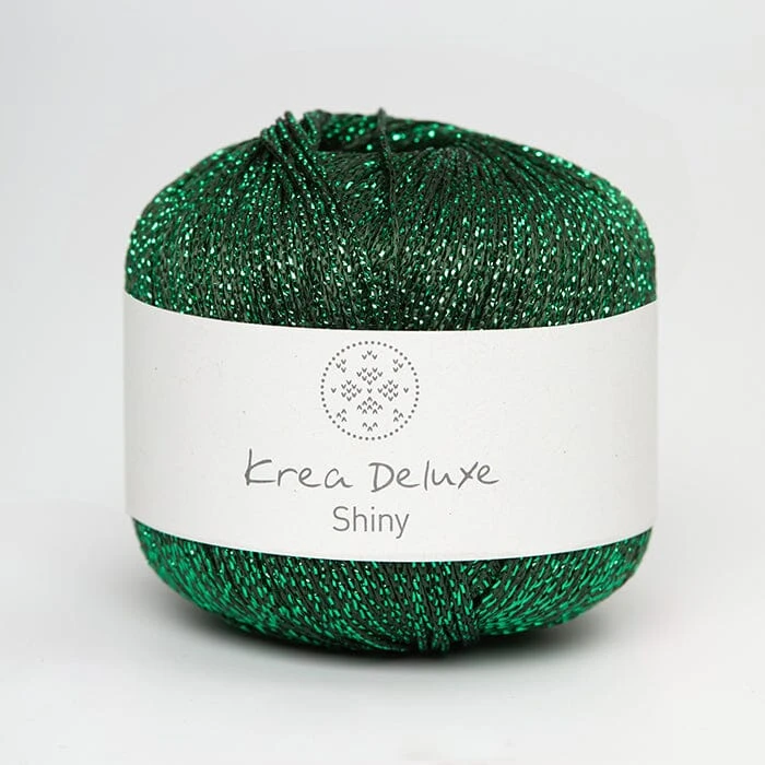 Krea Deluxe Shiny Glitter Yarn is a great way to bring a little glitter to your knitting projects. Shiny can be used by itself or combined with Krea Deluxe Organic Cotton to add detail to your crochet projects.