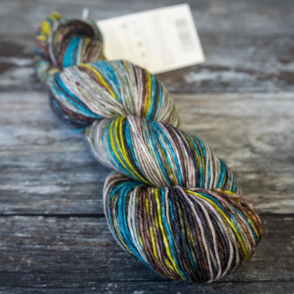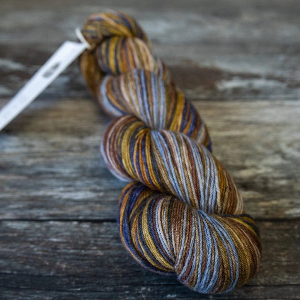 Hand-dyed self-striping sock yarn, Lazy Lion is rather special!