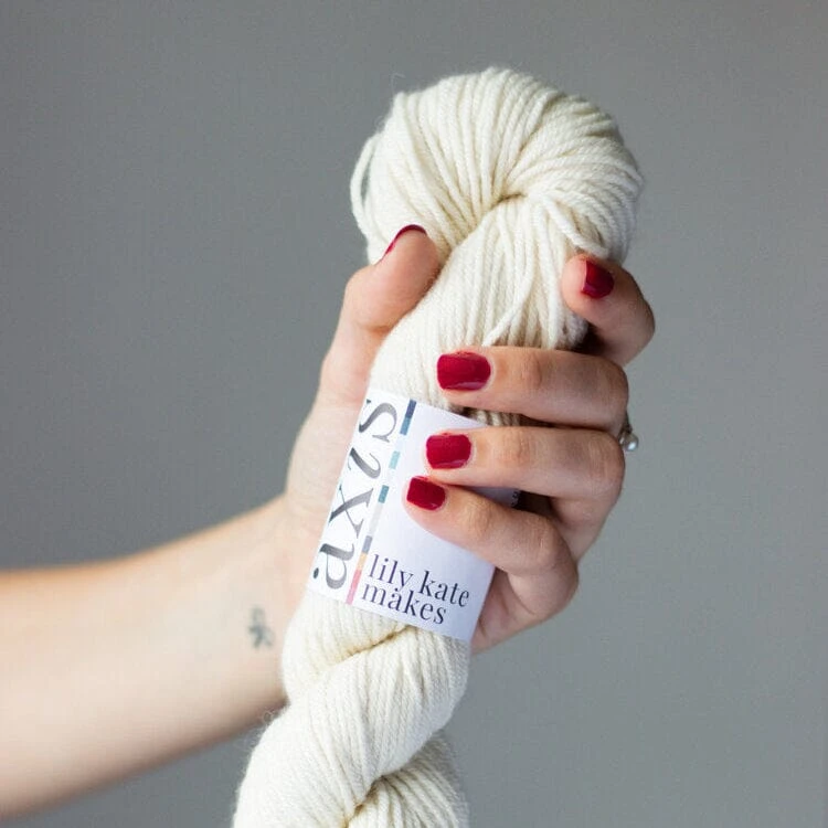 With 100m (109 yards) per 50g skein, Lily Kate Axis provides excellent stitch definition, perfect for showcasing textured patterns, cables, or simple stitches alike. The worsted-weight gauge makes it versatile and easy to work with, whether you’re knitting a sweater, a cosy hat, or a snuggly scarf.