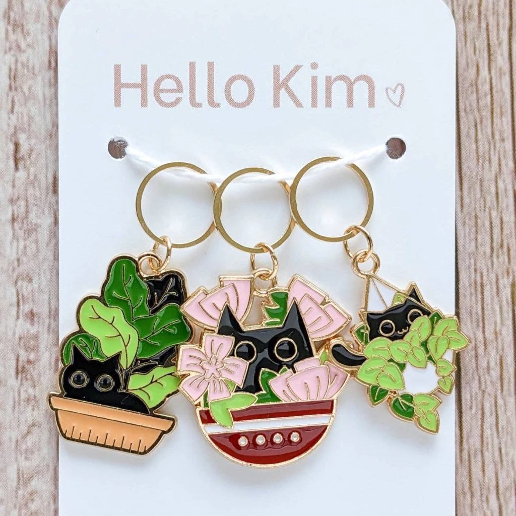 From Hello Kim, the Wild Cat Stitch Marker Set includes three marker rings.