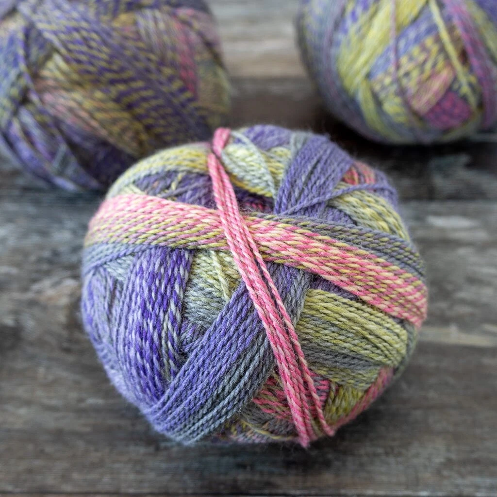 Schoppel Wolle Zauberball Stärke 6 offers long subtle colour repeats. Each ply is dyed differently, lending a soft marl effect to the yarn. Zauberball Stärke 6 knits up between a sport weight and DK gauge, making it perfect for thicker socks, shawls and winter accessories like mittens and gloves. It comes in a 150g ball, which gives you 400m of yarn.
